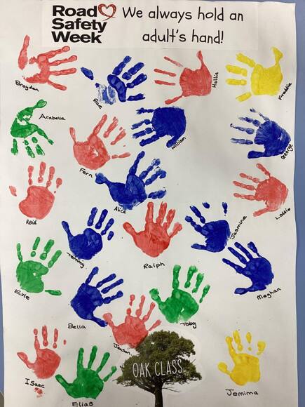 Posted on 19/11/2024It’s #roadsafetyweek. Nursery class have been learning about road safety heroes who help us and role playing different roadside scenarios. Outside, they practised waiting for cars to stop at a zebra crossing, listening to road safety heroes and holding hands to cross the road. Inside, they talked about ways they can keep themselves safe near roads and made a promise to always hold an adult’s hand when near a road.