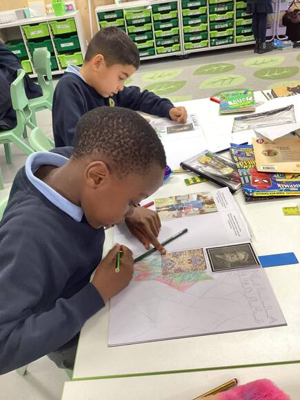 Posted on 14/10/2024Cherry Class love the creativity and freedom that they have with their sketchbooks. Today, they continued their art topic of ‘printing’ by exploring the work of William Morris.