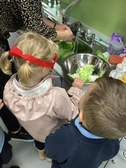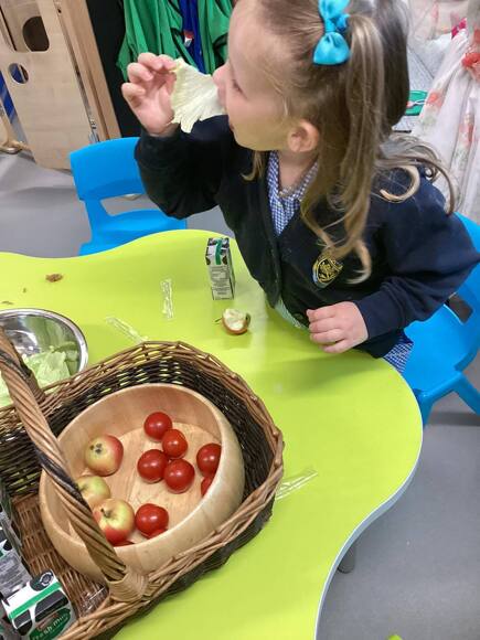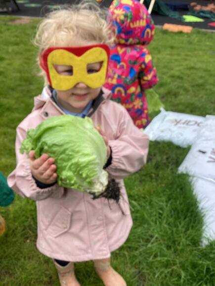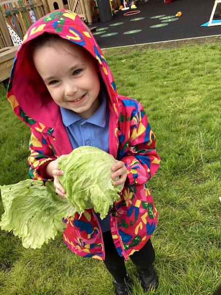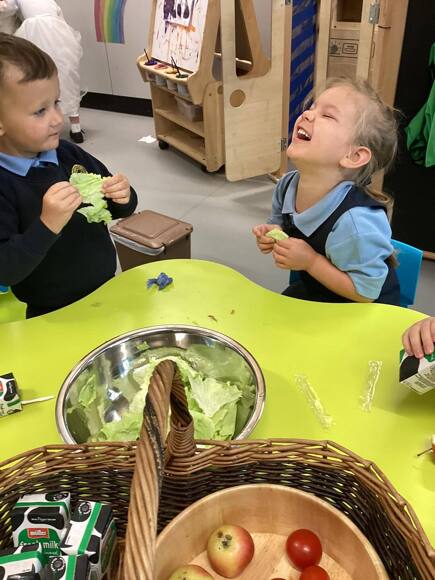 Posted on 10/06/2024For their snack this morning, nursery class enjoyed some lettuce they they have grown themselves in the garden!